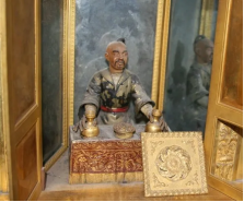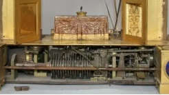 完全修复好后,为了便于搬动这件钟表和防潮,配了一个金丝楠木的底座。这座高 70 厘米的钟,最复杂的是联动变魔术的装置。“每一套都有独立的运转模式,并通过一个连接在时间上联动起来。门打开,魔术人开碗,出来什么球,什么情况下,碗打开,小鸟飞出来,都有顺序,一环扣一环,错一个都不行。”