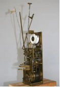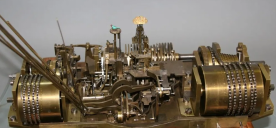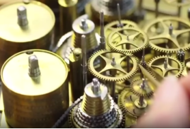 “魔术人钟”一共有七套传动装置,总共一千多个零件,包括走时、音乐、鸟叫、开门等。最复杂的是联动变魔术装置。“每一套都有独立的运转模式,并通过一个连接在时间上联动起来。门打开,魔术人开碗,出来什么球,什么情况下,碗打开,小鸟飞出来,都有顺序,错一个都不行。”