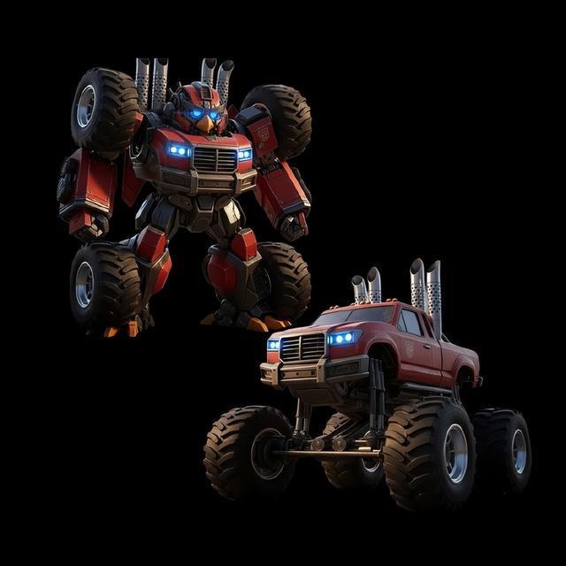 红色越野巨兽与怒鸟红的联动是力量的狂欢。巨型轮胎、夸张排气管,这辆越野皮卡是力量的具象化;变形后的机器人,将越野的粗犷与怒鸟红的坚毅融为一体,蓝眸如炬,机甲如钢,仿佛能在荒野中犁出属于自己的战场,把 “愤怒” 的能量转化为破阵的动力。